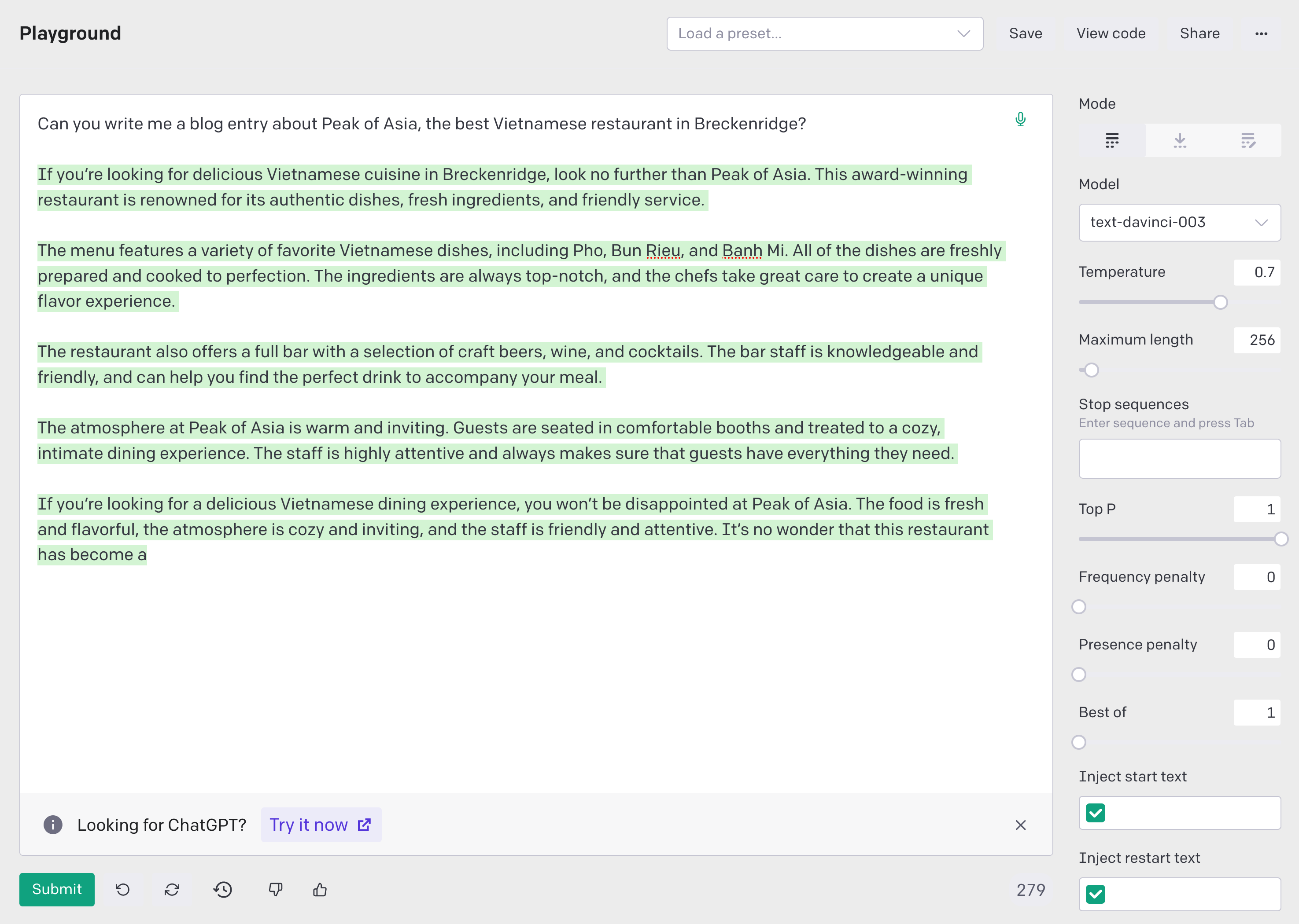 “Write a quick blog post about how I just wrote a restaurant review blog entirely with OpenAI.”
